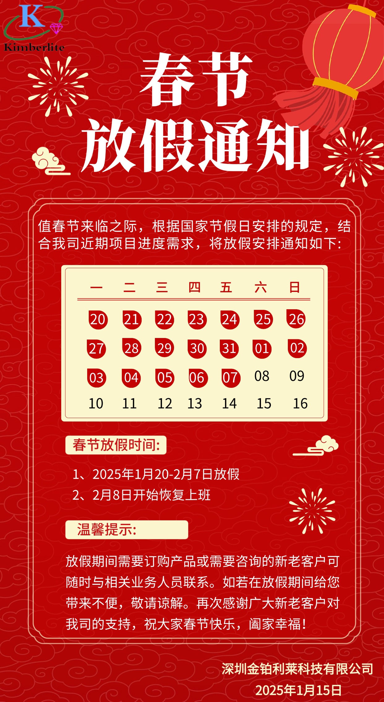 金鉑利萊2025年春節(jié)放假通知!
