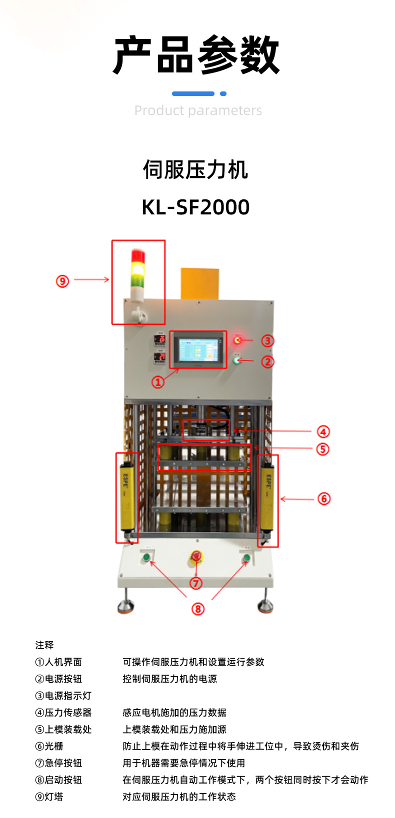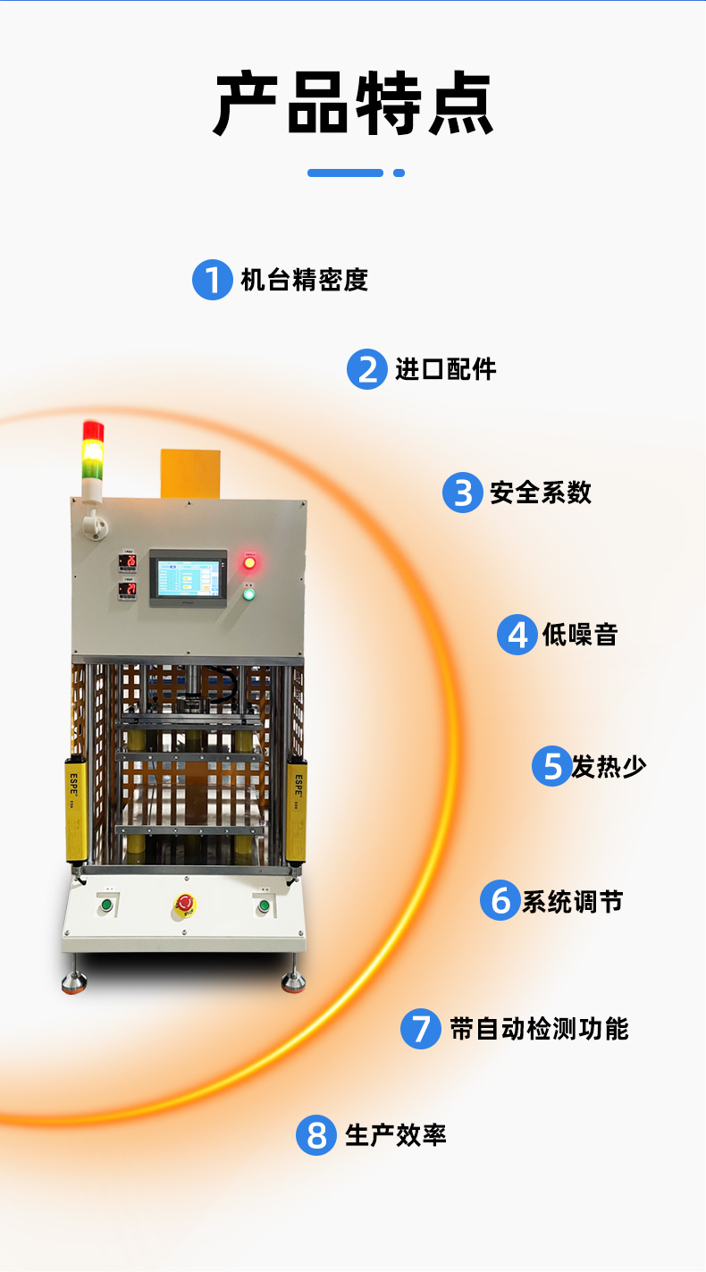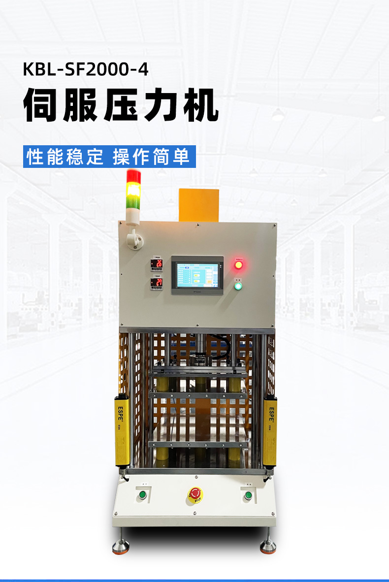 精密數控伺服電子壓力機簡稱伺服壓力機、電子壓力機,其工作原理是由伺服電機驅動H精度滾珠絲桿進行精密壓力裝配作業,全程實現壓裝力與壓入深度的閉環控制。另可配置加熱、實時壓力曲線顯示、多工位、掃碼、自動化等功能。