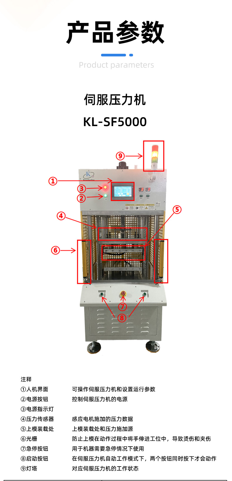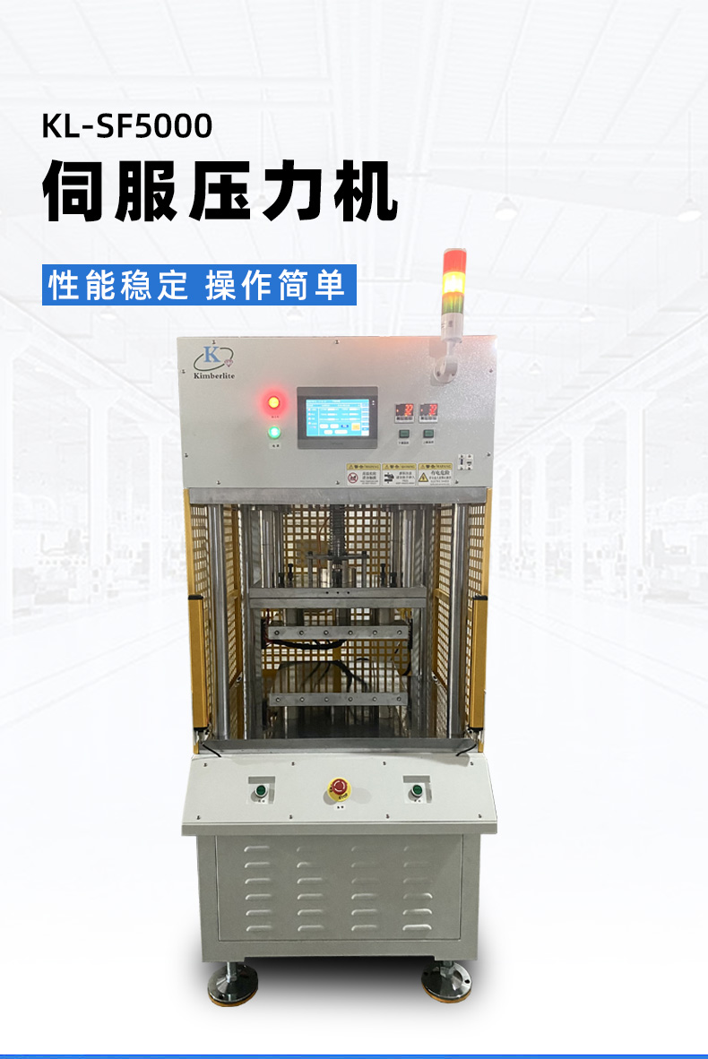 精密數控伺服電子壓力機簡稱伺服壓力機、電子壓力機,其工作原理是由伺服電機驅動H精度滾珠絲桿進行精密壓力裝配作業,全程實現壓裝力與壓入深度的閉環控制。另可配置加熱、實時壓力曲線顯示、多工位、掃碼、自動化等功能。